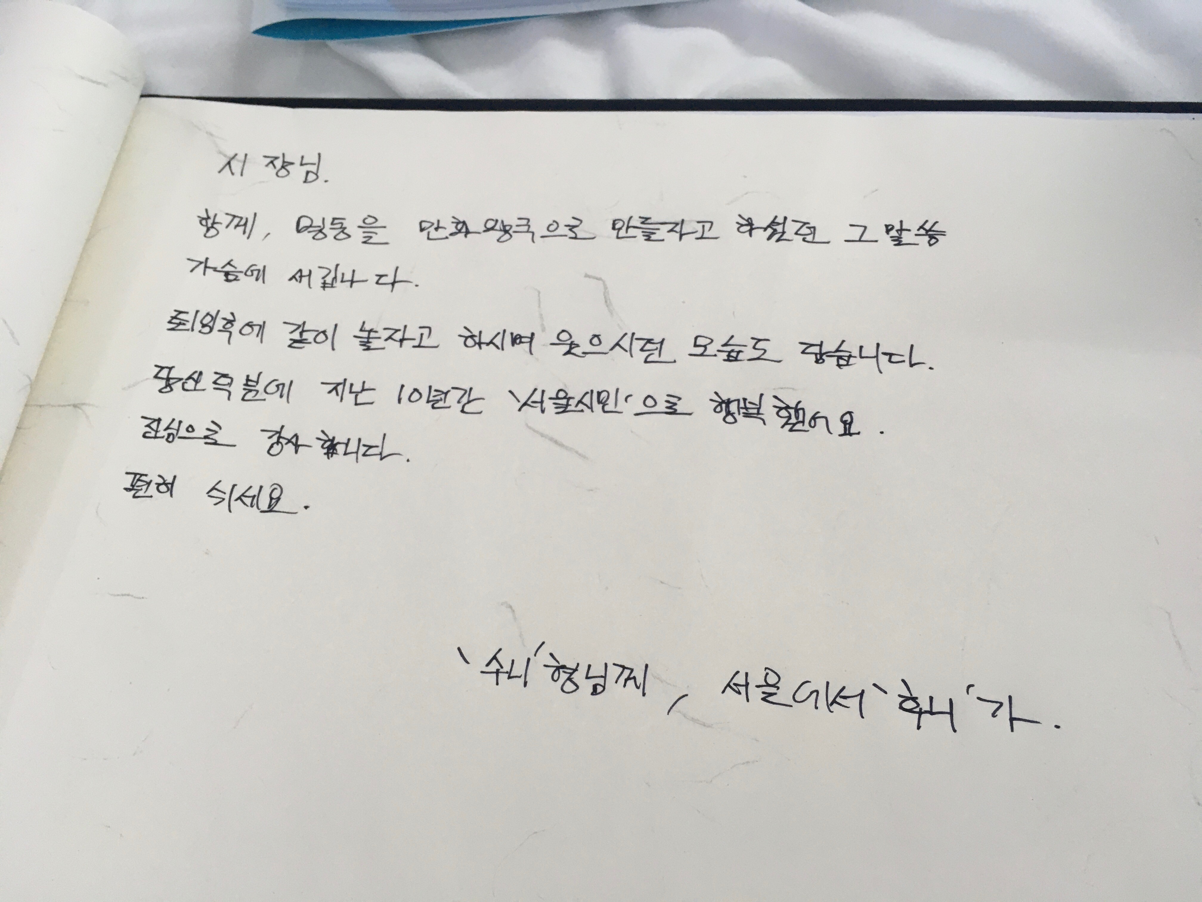 만화를 좋아하셨던 우리 시장님과 함께 이야기 하던 추억을 저버릴 수 가 없습니다.