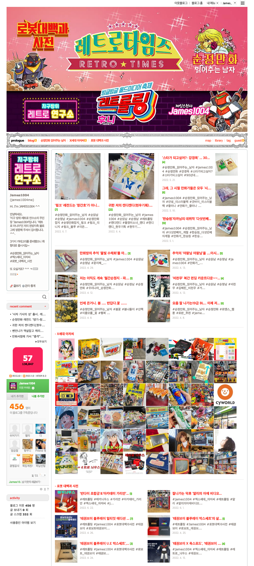 #지구방위레트로연구소 ....라는 희한한 타이틀로 새롭게 시작하는 James1004의 블로그는 '만화/애니메이션'과 제가 좋아하는 '레트로 문화'를 집중적으로 다룰 예정입니다.
